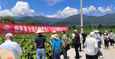 7月31日,一場(chǎng)由云南農(nóng)業(yè)大學(xué)、洱海流域農(nóng)業(yè)綠色發(fā)展研究院、大理州煙草公司聯(lián)合舉辦的致力于全面總結(jié)經(jīng)驗(yàn)、推動(dòng)洱海流域減排、促進(jìn)煙農(nóng)增收并穩(wěn)定展現(xiàn)煙葉品質(zhì)風(fēng)格特征的煙草復(fù)合微生物肥推廣示范觀摩活動(dòng)圓滿舉行。云南農(nóng)業(yè)大學(xué)、大理煙草科技小院共同研制、依托科研成果轉(zhuǎn)化,由大理州企業(yè)家協(xié)會(huì)常務(wù)副會(huì)長(zhǎng)單位——云南順豐洱海環(huán)??萍脊煞萦邢薰揪纳a(chǎn)的“洱?!迸茻煵輰S脧?fù)合微生物肥,在此次活動(dòng)中大放異彩,吸引了眾多領(lǐng)導(dǎo)、專家、媒體以及各地相關(guān)人員前來參與、觀摩。觀摩組一行率先抵達(dá)挖色鎮(zhèn)“云 87 ”品種示范點(diǎn),示范點(diǎn)內(nèi)