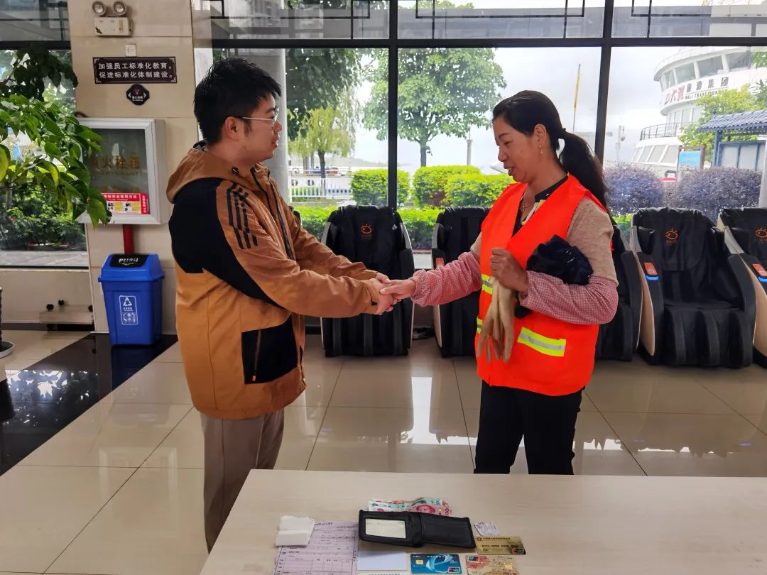 安全環(huán)保部經(jīng)理李海深在錢包內(nèi)的一張訂貨單上找到一個(gè)電話號(hào)碼,便試著與對(duì)方聯(lián)系,經(jīng)詢問(wèn),接電話的是失主梁云舒的妻子,于是李海深便將事情經(jīng)過(guò)告知其妻子,并請(qǐng)其妻子通知失主梁云舒盡快與公司聯(lián)系。大約十分鐘后,失主梁先生冒雨趕到了洱海游船分公司大理港售票大廳,經(jīng)現(xiàn)場(chǎng)工作人員與失主梁先生核實(shí)錢包內(nèi)的相關(guān)現(xiàn)金卡證和身份證號(hào),確認(rèn)是失主本人后當(dāng)場(chǎng)將錢包歸還梁先生,梁先生非常激動(dòng),緊緊握著楊發(fā)用同志的手說(shuō):“非常感謝您,好心的楊大姐,謝謝,謝謝!您的善良是我本次大理之行見(jiàn)到的最美風(fēng)景。”