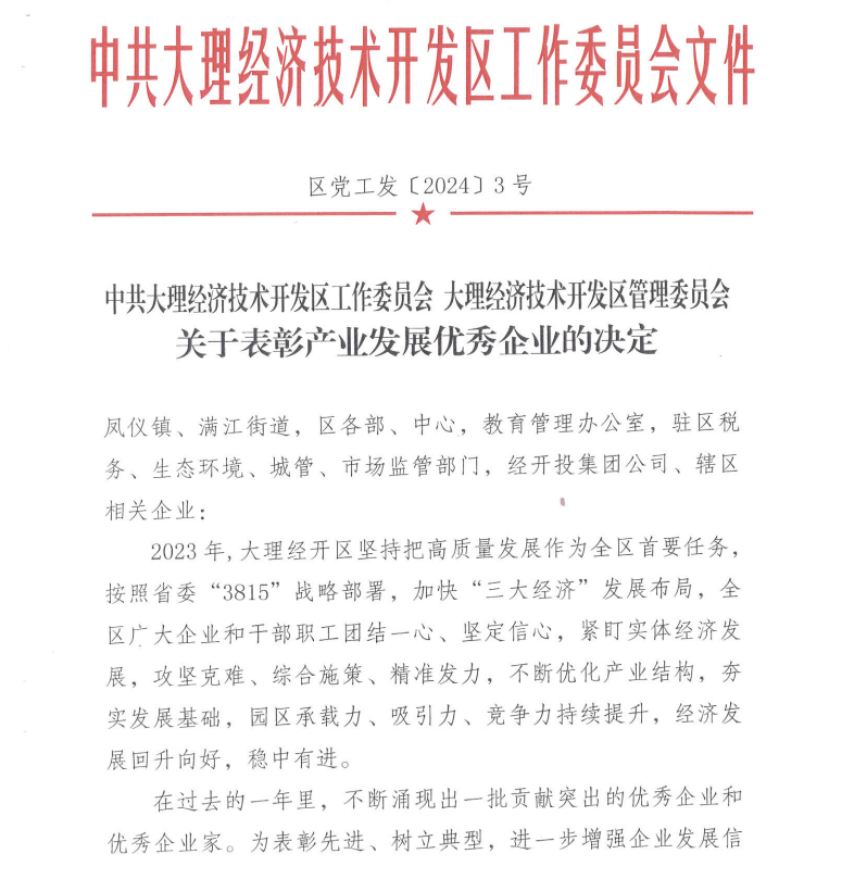 順豐洱海環(huán)保股份榮獲大理經(jīng)開區(qū)“產(chǎn)業(yè)發(fā)展特別貢獻(xiàn)獎(jiǎng)”