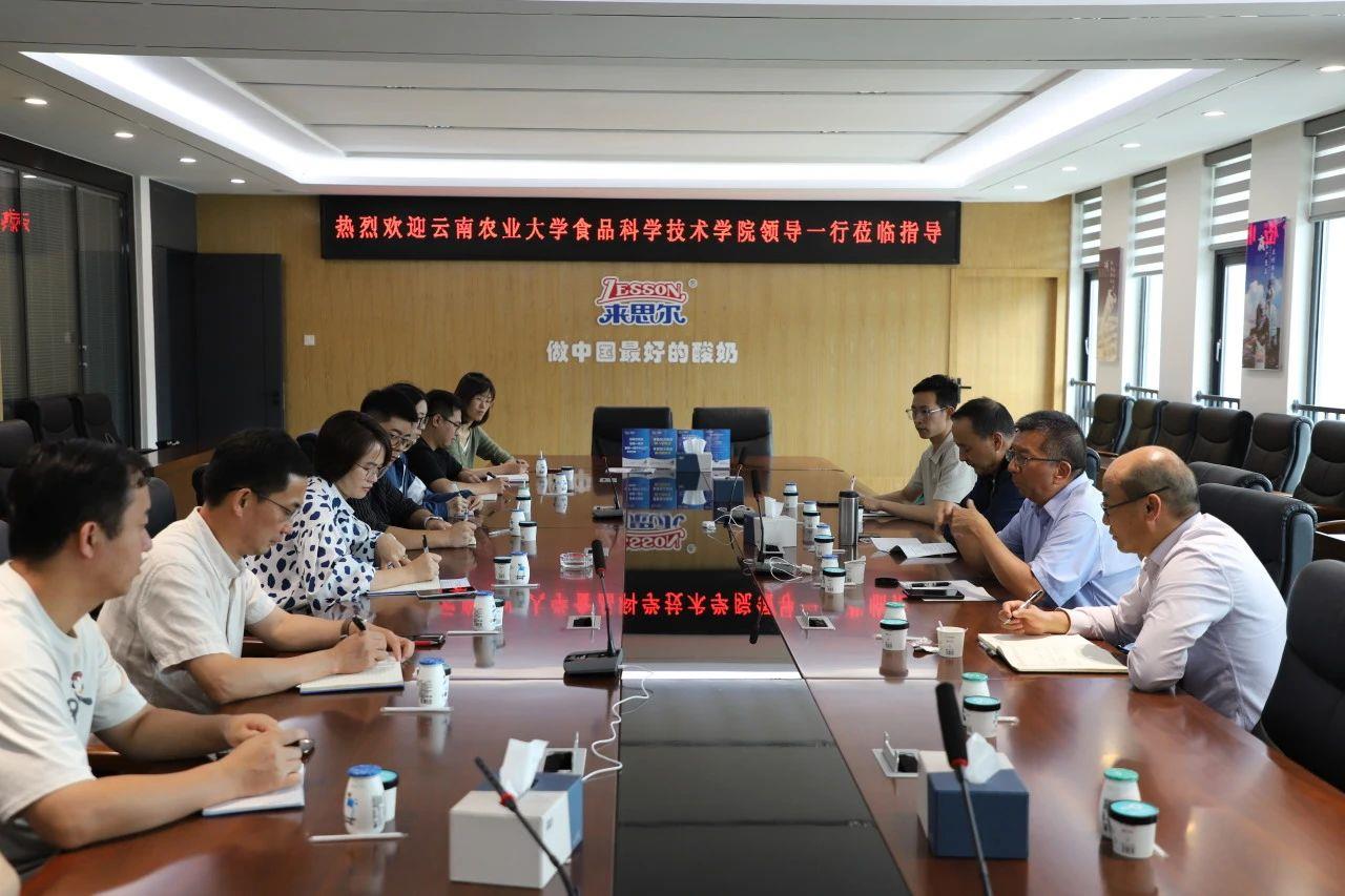 7月31日下午,云南農(nóng)業(yè)大學(xué)食品科學(xué)技術(shù)學(xué)院黨委書記李世俊,云南省奶業(yè)協(xié)會會長、云南農(nóng)業(yè)大學(xué)黃艾祥教授一行到大理州企業(yè)家協(xié)會理事單位——大理來思爾乳業(yè)考察交流。來思爾乳業(yè)副總經(jīng)理古繼芳,技術(shù)研發(fā)中心高級部長趙世偉,來思爾乳業(yè)云南農(nóng)大校友代表杜永新、王博文等參與。
