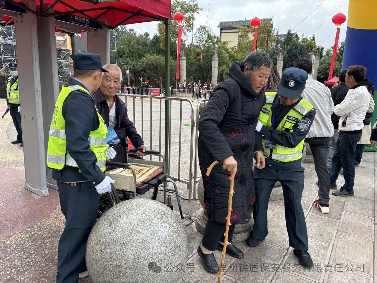慶祝大會(huì)當(dāng)天,錦盾執(zhí)勤人員凌晨集合、提前到達(dá),按照各崗位預(yù)定方案迅速投入工作。在主要入口的安檢點(diǎn),安檢隊(duì)員們熟練操作專業(yè)設(shè)備,對(duì)每一位入場人員及隨身物品進(jìn)行細(xì)致檢查。他們不斷重復(fù)著規(guī)范的引導(dǎo)動(dòng)作,口中說著“請(qǐng)您抬手配合一下安檢”、“謝謝您的合作”,在確保安全的同時(shí),也最大限度加快了通行效率,避免了入口處的擁堵。在長達(dá)數(shù)小時(shí)的勤務(wù)中,全體執(zhí)勤人員始終保持著高度的警惕性和良好的精神風(fēng)貌,即使汗水浸透了制服,依然身姿挺拔,文明執(zhí)勤。更令人感動(dòng)的是,執(zhí)勤過程中涌現(xiàn)出許多體現(xiàn)人文關(guān)懷的瞬間:一名觀眾不慎遺失裝有重要證件的手提包,焦急萬分,巡邏隊(duì)員通過多方詢問和排查,最終在失物招領(lǐng)處為其尋回;部分老年參會(huì)群眾行動(dòng)不便的,執(zhí)勤人員主動(dòng)提供幫扶,協(xié)助其上下臺(tái)階、尋找休息座椅......這些看似微小的善舉,卻如涓涓細(xì)流,匯聚成暖心的海洋,生動(dòng)展現(xiàn)了錦盾保安員“安全守護(hù)者”與“溫情傳遞者”的雙重角色,贏得了現(xiàn)場群眾的頻頻贊許。