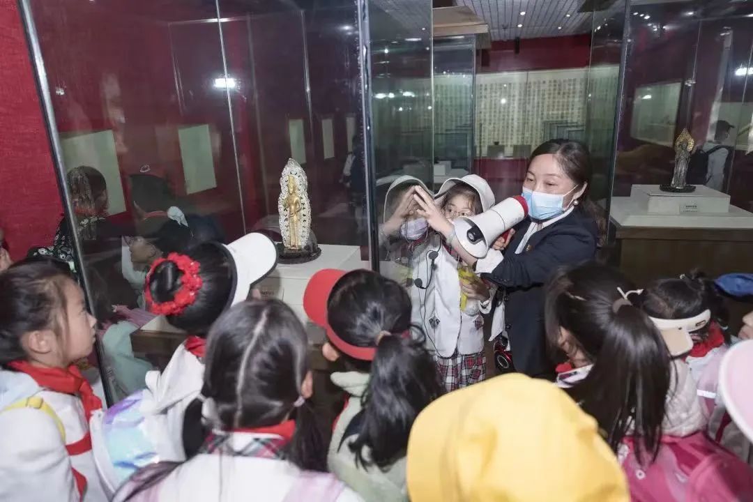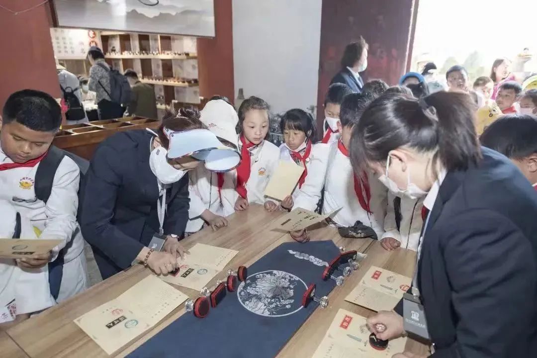 穿過(guò)塔區(qū)來(lái)到文物陳列館開(kāi)展“藝術(shù)課堂”講學(xué),從線條的婉轉(zhuǎn)流暢,到鎏金銅像的造型刻畫(huà),無(wú)一不在向孩子們彰顯南詔大理國(guó)時(shí)期的藝術(shù)造詣和獨(dú)特審美,感受千百年前文物的藝術(shù)熏陶。之后的“非遺課堂”,通過(guò)參與非遺甲馬體驗(yàn)和文創(chuàng)印章活動(dòng)提升孩子們的動(dòng)手能力,并將集章冊(cè)帶回家紀(jì)念。